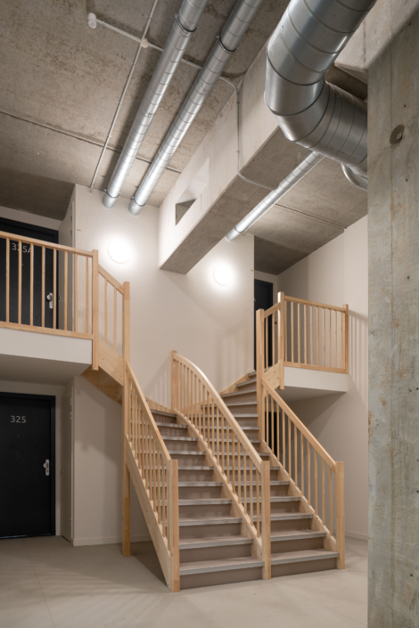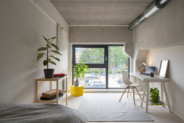 In totaal zijn er 206 studio’s en kamers voor studenten gerealiseerd. De 126 zelfstandige studio’s van ca. 20 m² hebben hun eigen voorzieningen. De bewoners van de 80 onzelfstandige kamers (ca. 15 m²) delen woonkamer, keuken, sanitair en balkon met huisgenoten. Elkaar ontmoeten wordt gestimuleerd door gezamenlijke voorzieningen zoals een woonkamer op de 3e, een studieruimte op de 2 en de 4e verdieping en het dakterras met uitzicht over de stad.